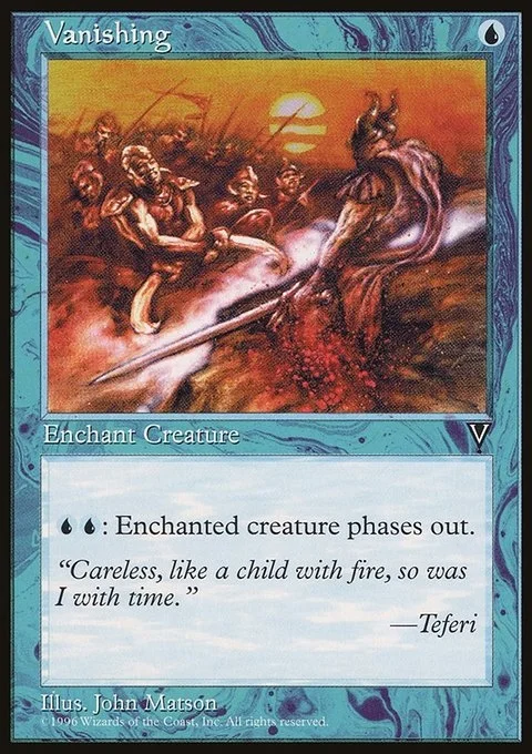 Enchant creature {U}{U}: Enchanted creature phases out. (While it's phased out, it's treated as though it doesn't exist. It phases in before its controller untaps during their next untap step.)