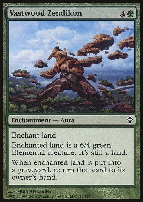 Enchant land Enchanted land is a 6/4 green Elemental creature. It's still a land. When enchanted land dies, return that card to its owner's hand.
