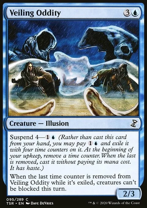 When the last time counter is removed from Veiling Oddity while it's exiled, creatures can't be blocked this turn.