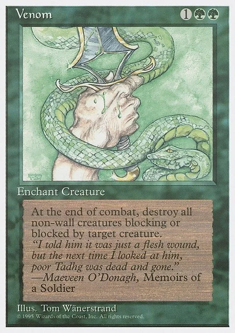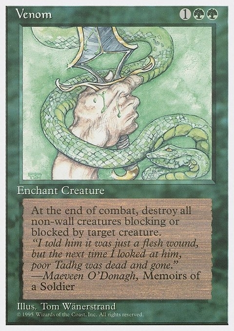 Enchant creature Whenever enchanted creature blocks or becomes blocked by a non-Wall creature, destroy the other creature at end of combat.
