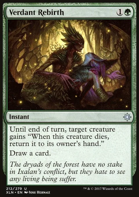 Until end of turn, target creature gains "When this creature dies, return it to its owner's hand." Draw a card.