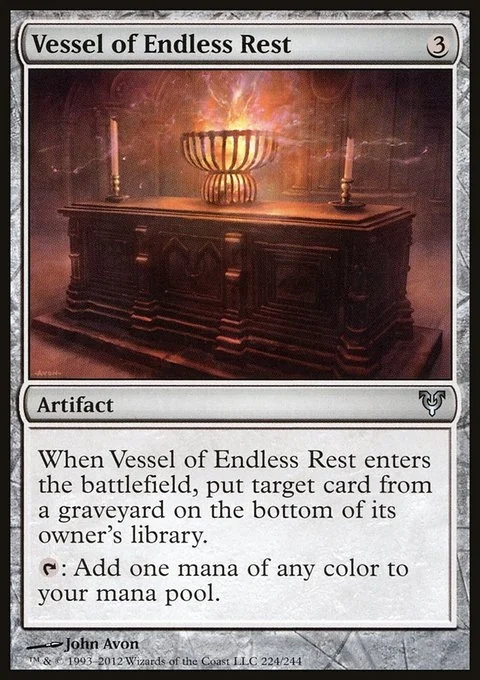 When Vessel of Endless Rest enters the battlefield, put target card from a graveyard on the bottom of its owner's library. {T}: Add one mana of any color.