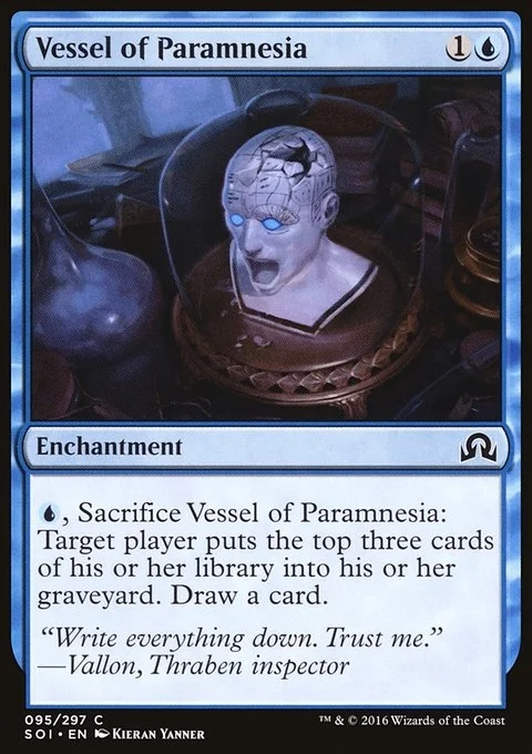 {U}, Sacrifice this enchantment: Target player mills three cards. Draw a card.