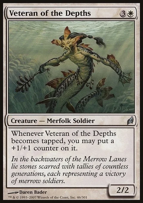 Whenever Veteran of the Depths becomes tapped, you may put a +1/+1 counter on it.