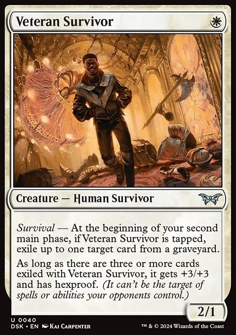 Survival — At the beginning of your second main phase, if this creature is tapped, exile up to one target card from a graveyard.