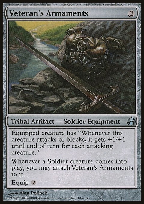 Whenever a Soldier creature comes into play, you may attach Veteran's Armaments to it.