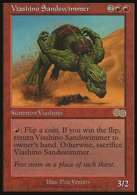 R: Flip a coin. If you win the flip, return Viashino Sandswimmer to owner’s hand. Otherwise, sacrifice Viashino Sandswimmer.