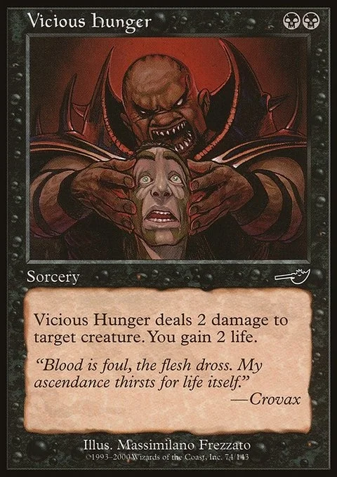 Vicious Hunger deals 2 damage to target creature and you gain 2 life.
