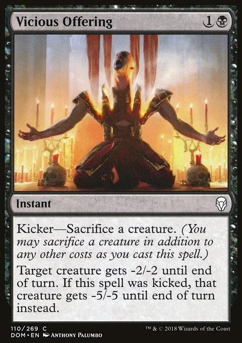 Kicker—Sacrifice a creature. (You may sacrifice a creature in addition to any other costs as you cast this spell.) Target creature gets -2/-2 until end of turn. If this spell was kicked, that creature gets -5/-5 until end of turn instead.
