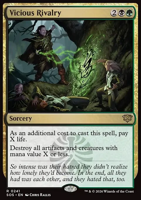 As an additional cost to cast this spell, pay X life. Destroy all artifacts and creatures with mana value X or less.