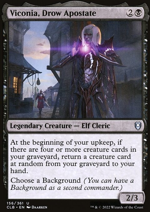 At the beginning of your upkeep, if there are four or more creature cards in your graveyard, return a creature card at random from your graveyard to your hand. Choose a Background (You can have a Background as a second commander.)