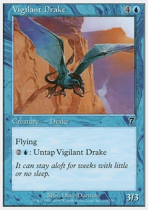 Flying {2}{U}: Untap Vigilant Drake.
