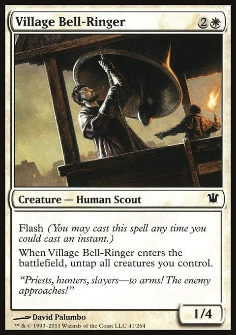 Flash (You may cast this spell any time you could cast an instant.) When Village Bell-Ringer enters the battlefield, untap all creatures you control.