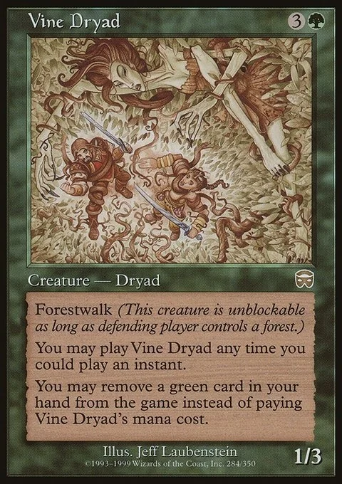 You may remove a green card in your hand from the game instead of paying Vine Dryad’s mana cost.