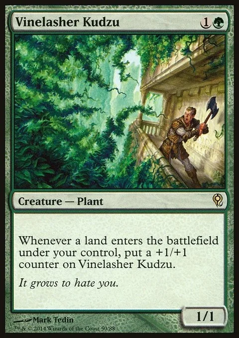 Whenever a land enters the battlefield under your control, put a +1/+1 counter on Vinelasher Kudzu.