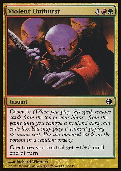 Cascade (When you cast this spell, exile cards from the top of your library until you exile a nonland card that costs less. You may cast it without paying its mana cost. Put the exiled cards on the bottom in a random order.) Creatures you control get +1/+0 until end of turn.