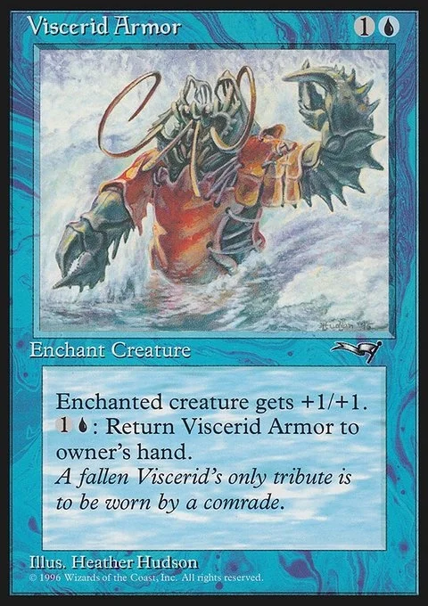 Enchant creature Enchanted creature gets +1/+1. {1}{U}: Return Viscerid Armor to its owner's hand.