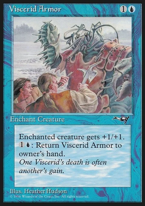 Enchant creature Enchanted creature gets +1/+1. {1}{U}: Return Viscerid Armor to its owner's hand.