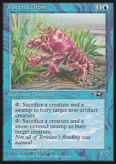 T: Sacrifice a creature and a swamp to bury target non-artifact creature.T: Sacrifice a creature and a snow-covered swamp to bury target creature.