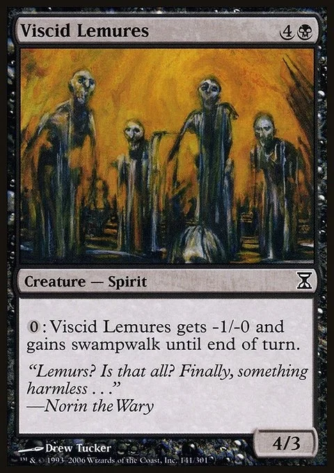 {0}: Viscid Lemures gets -1/-0 and gains swampwalk until end of turn. (It can't be blocked as long as defending player controls a Swamp.)