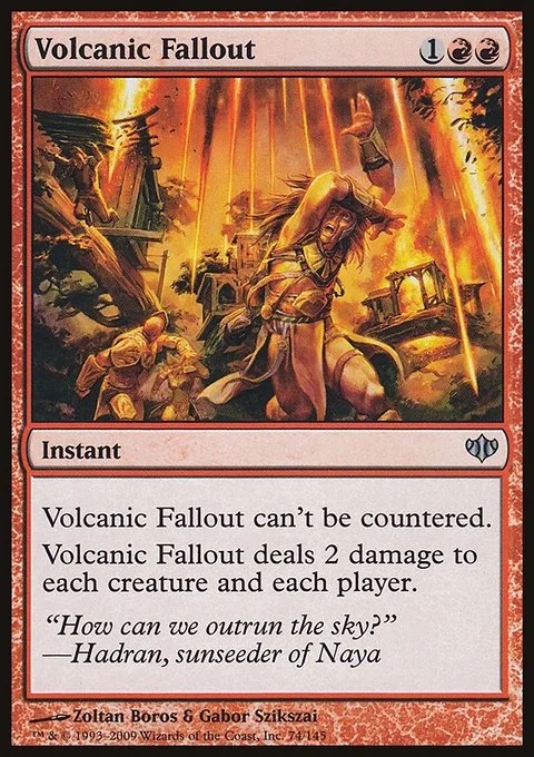 This spell can't be countered. Volcanic Fallout deals 2 damage to each creature and each player.