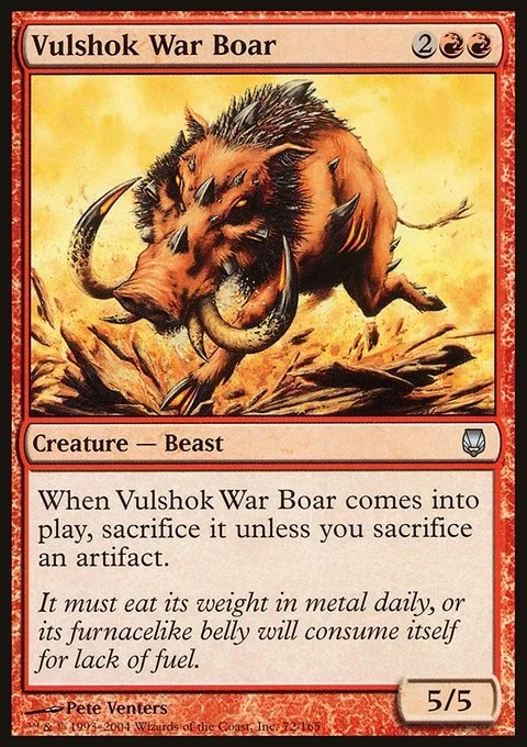 When Vulshok War Boar enters the battlefield, sacrifice it unless you sacrifice an artifact.