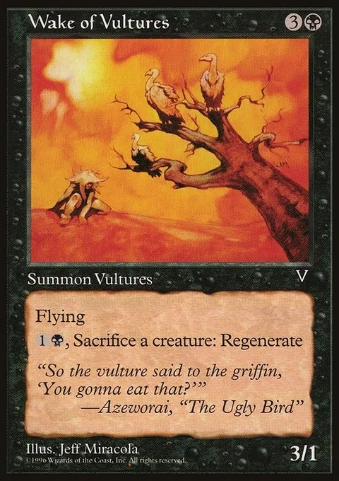 Flying {1}{B}, Sacrifice a creature: Regenerate Wake of Vultures.