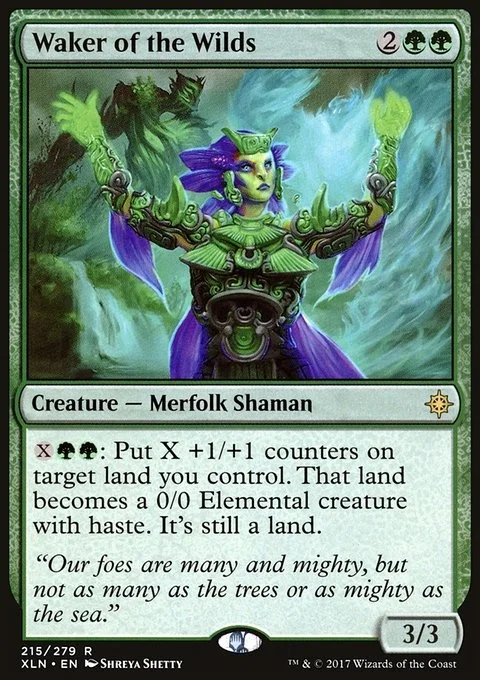{X}{G}{G}: Put X +1/+1 counters on target land you control. That land becomes a 0/0 Elemental creature with haste. It's still a land.