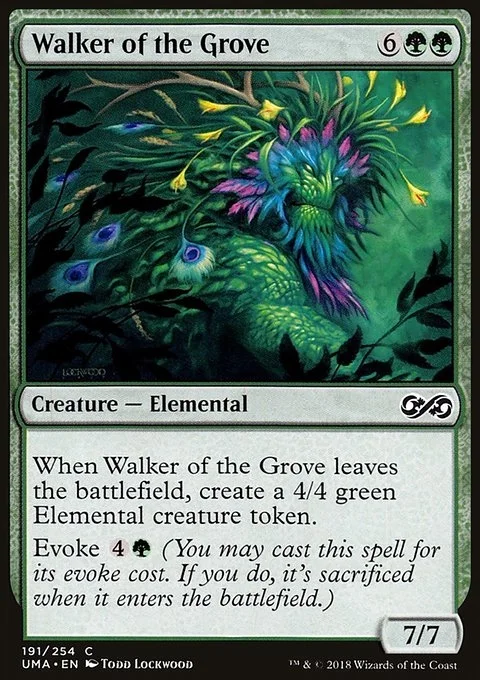 When Walker of the Grove leaves the battlefield, create a 4/4 green Elemental creature token. Evoke {4}{G} (You may cast this spell for its evoke cost. If you do, it's sacrificed when it enters the battlefield.)