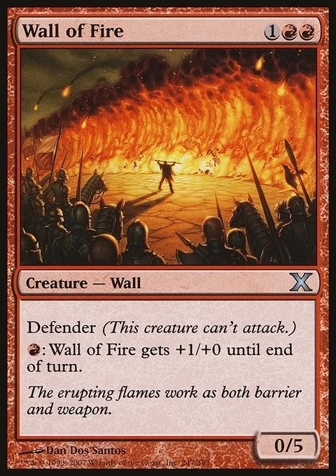 Defender (This creature can't attack.) {R}: Wall of Fire gets +1/+0 until end of turn.