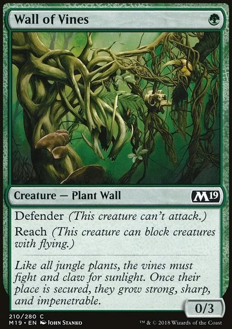 Defender (This creature can't attack.) Reach (This creature can block creatures with flying.)