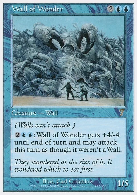 Defender (This creature can't attack.) {2}{U}{U}: Wall of Wonder gets +4/-4 until end of turn and can attack this turn as though it didn't have defender.