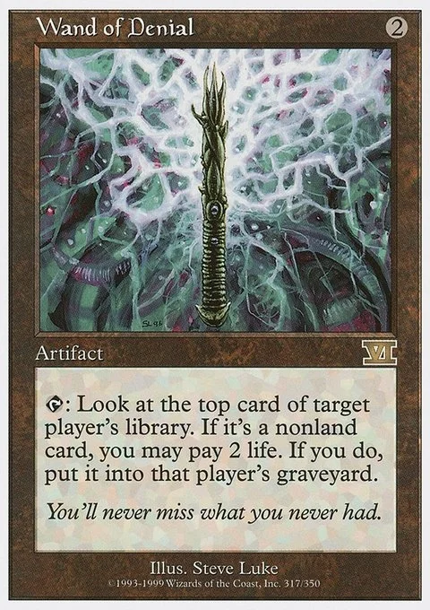 T: Look at the top card of target player’s library. If it’s a nonland card, you may pay 2 life. If you do, put it into that player’s graveyard.