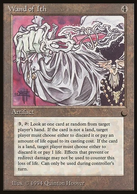 3, T: Look at one card at random from target player’s hand. If the card is not a land, target player must choose either to discard it or pay an amount of life equal to its casting cost. If the card is a land, target player must choose either to discard it or pay 1 life. Effects that prevent or redirect damage may not be used to counter this loss of life. Can only be used during controller’s turn.