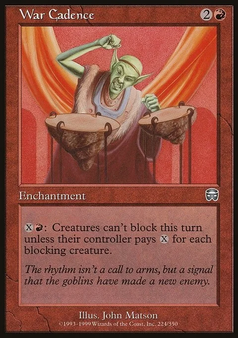 {X}{R}: This turn, creatures can't block unless their controller pays {X} for each blocking creature they control.
