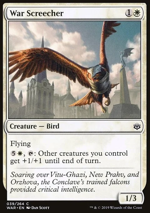 Flying {5}{W}, {T}: Other creatures you control get +1/+1 until end of turn.