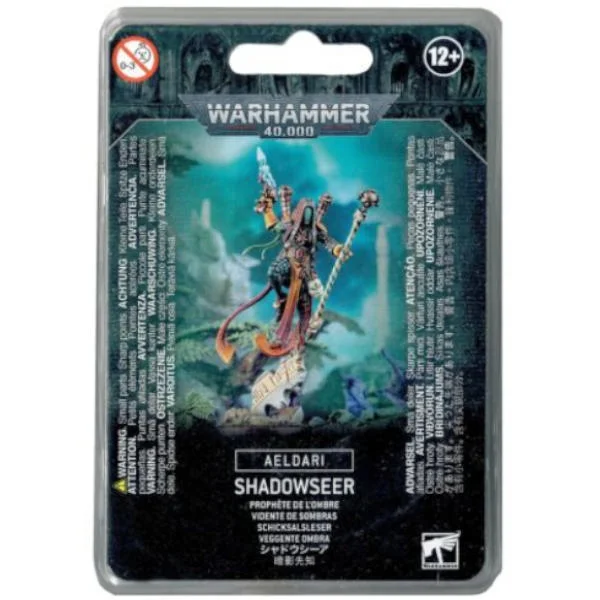 This 11-piece plastic kit makes one Harlequin Shadowseer armed a shuriken pistol, miststave and hallucinogen grenade launcher. The shuriken pistol can be replaced with a neuro disruptor which is also included. The model is supplied with a 25mm round base.