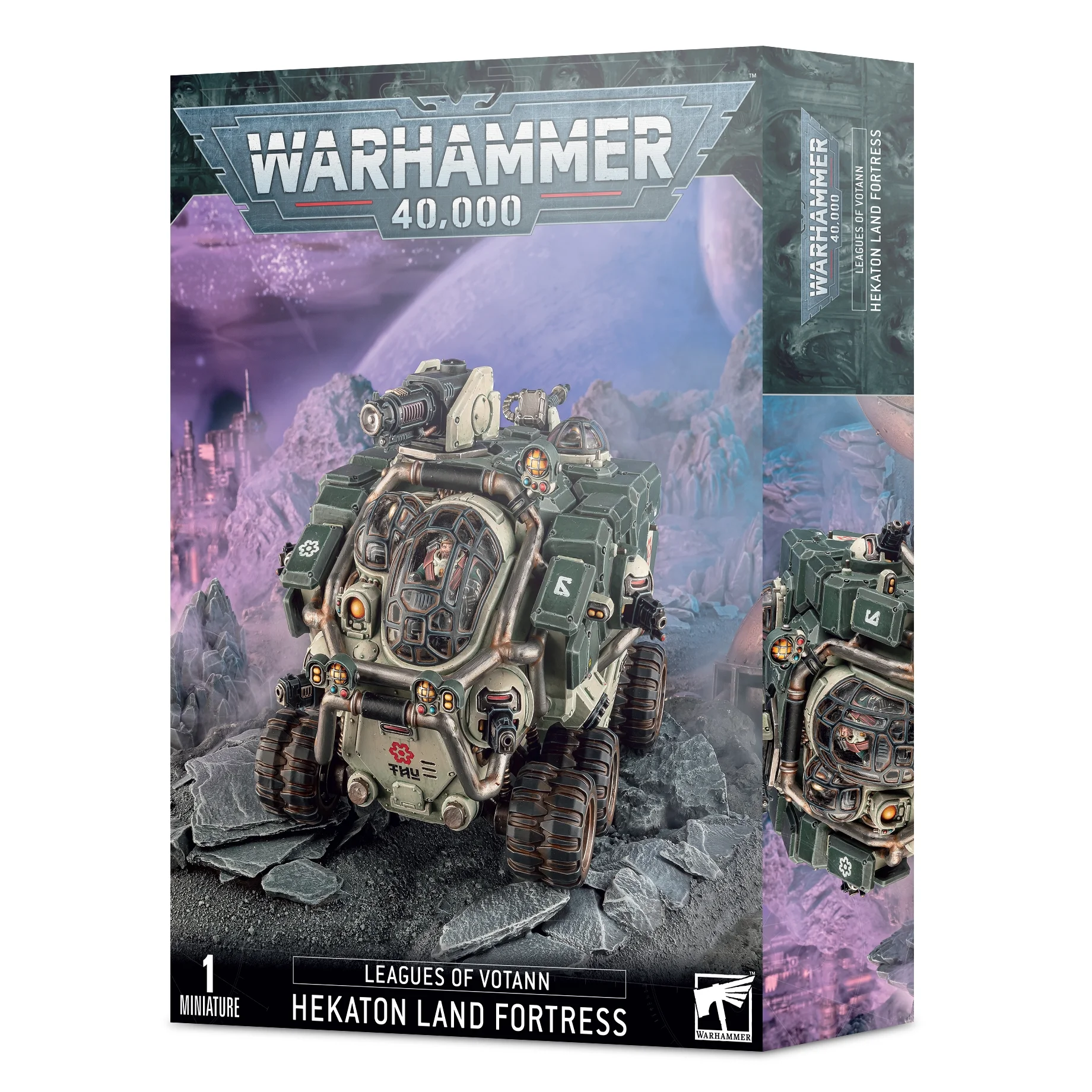 This multipart plastic kit builds one Hekaton Land Fortress, an indomitable heavy transport loaded with powerful guns. This mighty six-wheeled vehicle can be built with one of three powerful, adjustable turret weapons – a cyclic ion cannon to gun down the heaviest infantry, an SP heavy conversion beamer to carve a swathe through any target, or a heavy magna-rail cannon that can reduce even the toughest tanks to slag. This main gun is reinforced by two pairs of adjustable ball-turret sponson weapons – either bolt cannons or ion beamers.
