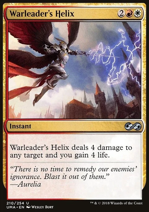 Warleader's Helix deals 4 damage to any target and you gain 4 life.