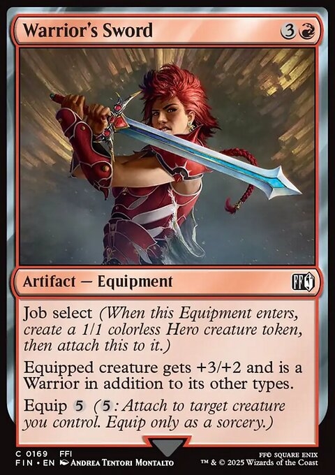 Equipped creature gets +3/+2 and is a Warrior in addition to its other types.