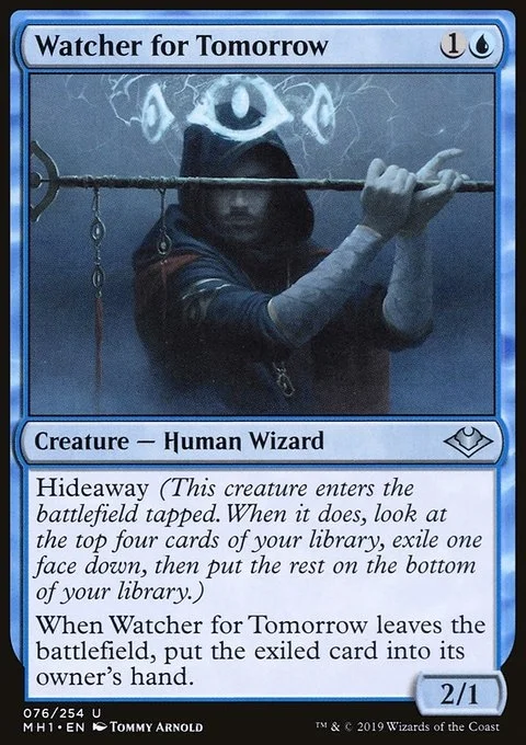 When Watcher for Tomorrow leaves the battlefield, put the exiled card into its owner's hand.