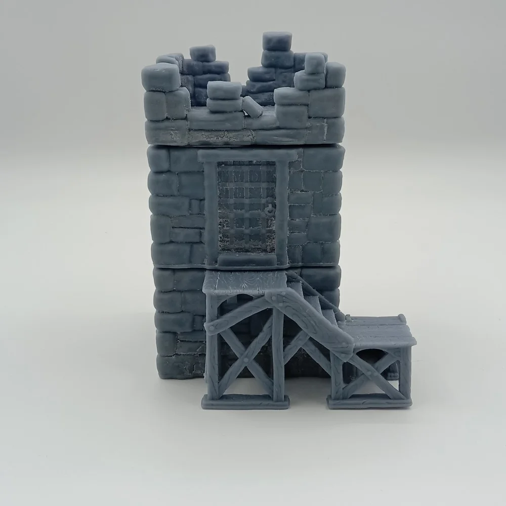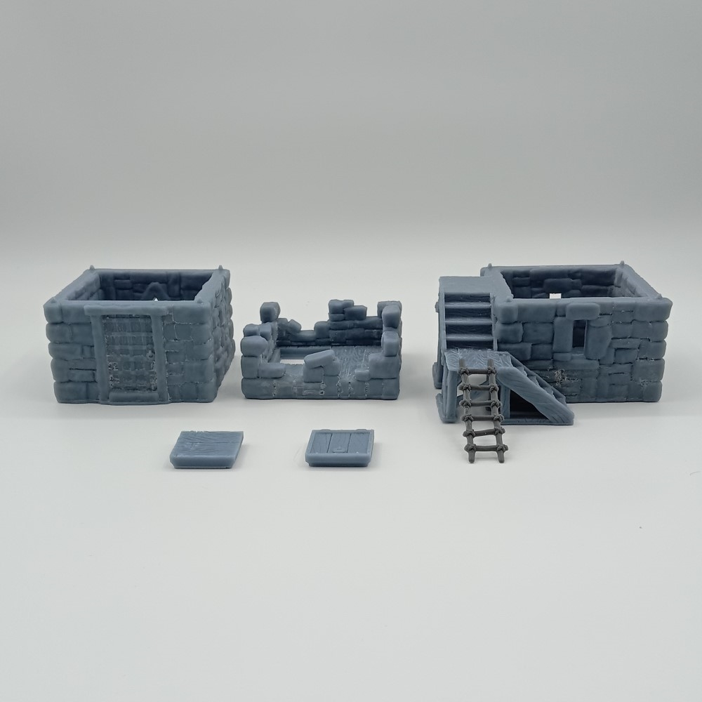 This is for 1 base levels with outer stairs, 1 entrance level, 1 ruined level, 1 wooden floor, 1 trapdoor and 1 ladder.
