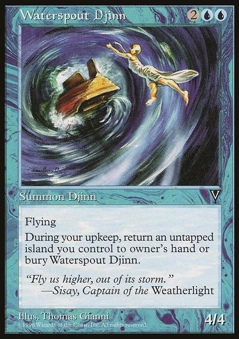 FlyingDuring your upkeep, return an untapped island you control to owner’s hand or bury Waterspout Djinn.