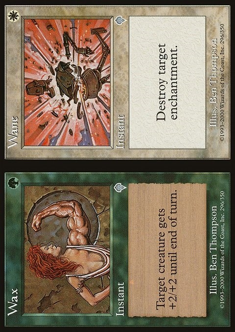 Wax Target creature gets +2/+2 until end of turn. Wane Destroy target enchantment.