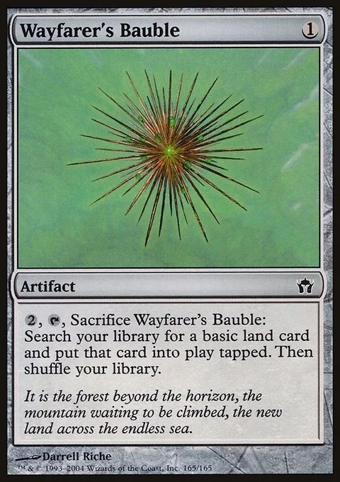 {2}, {T}, Sacrifice Wayfarer's Bauble: Search your library for a basic land card, put that card onto the battlefield tapped, then shuffle.