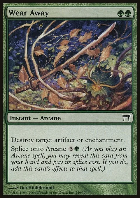 Destroy target artifact or enchantment. Splice onto Arcane {3}{G} (As you cast an Arcane spell, you may reveal this card from your hand and pay its splice cost. If you do, add this card's effects to that spell.)