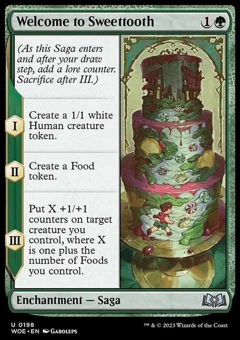 III — Put X +1/+1 counters on target creature you control, where X is one plus the number of Foods you control.