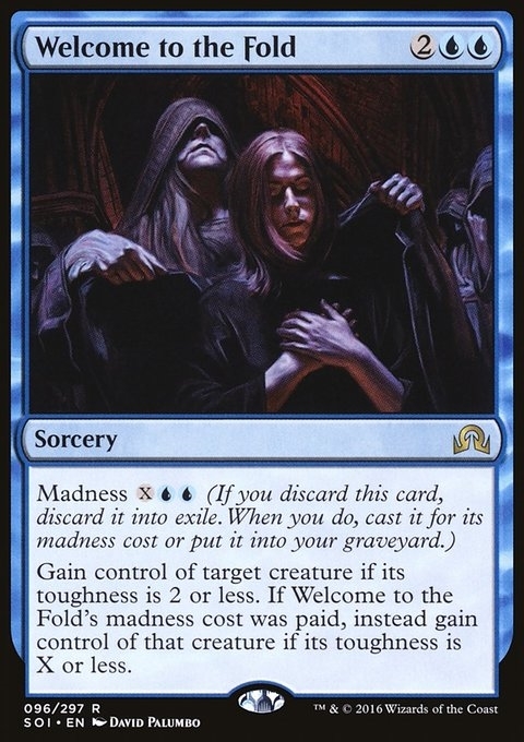 Gain control of target creature if its toughness is 2 or less. If this spell's madness cost was paid, instead gain control of that creature if its toughness is X or less.