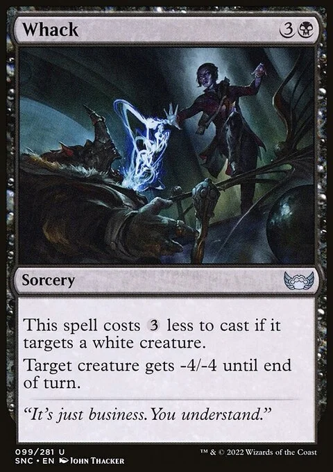 This spell costs {3} less to cast if it targets a white creature. Target creature gets -4/-4 until end of turn.