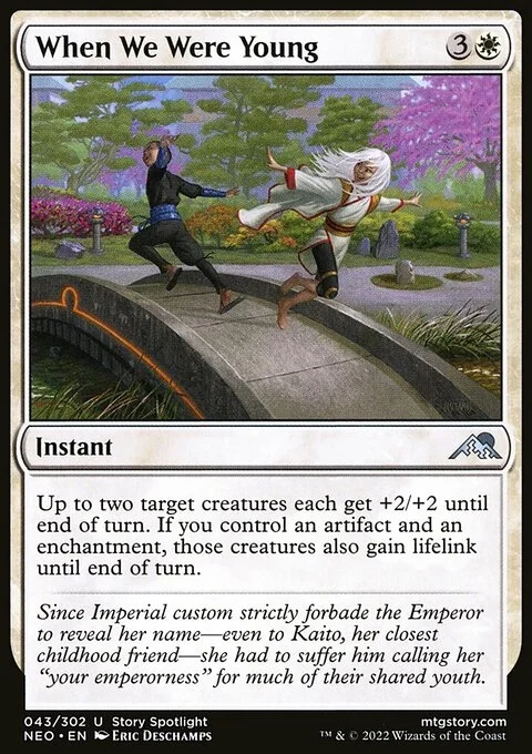 Up to two target creatures each get +2/+2 until end of turn. If you control an artifact and an enchantment, those creatures also gain lifelink until end of turn.